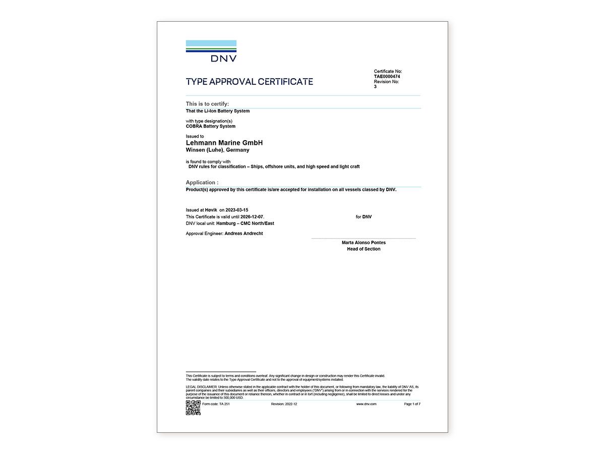 Watch our COBRA product video on YouTube to learn more about our safe and green battery system. The DNV and RINA type-approved marine energy solution employs LFP technology and is scalable to any demand.